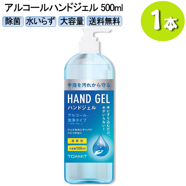 【送料無料】《単品》アルコールハンドジェル 500ml アルコール除菌 ポンプ ボトル 除菌ジェル ウイルス除去 除菌 洗浄 ウイルス対策 大容量 ハンドジェル 手軽 ウイルス除菌 詰め替え TOAMIT 160.0円/100ml 800円 送料無料  ワンデイ